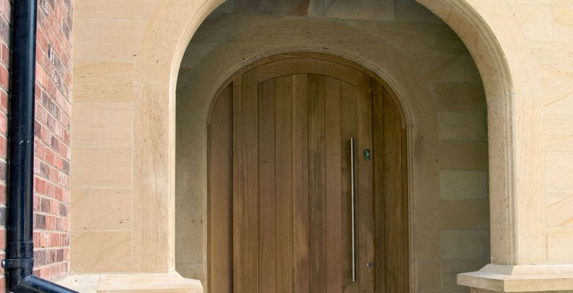 The stone type featured is both API Beige, and API Vein. The Beige is a clearer bed from the same area, buff throughout, used here on the detailing sections, doorways, windows etc. The second type is API Vein, which has red and pink vein colouring through the beige sandstone. The colouration has been achieved though the movement of water though the establishment of the subarcosic bed of the sandstone, the early movement of water causes a distinct marbling effect, easily recognizable as a sandstone feature.